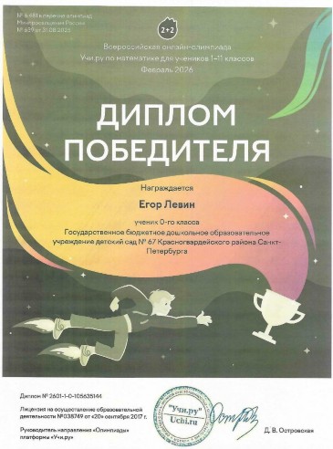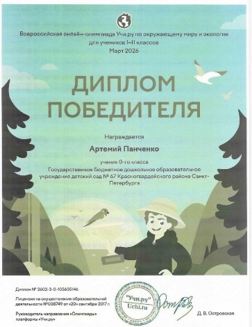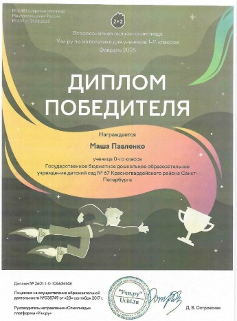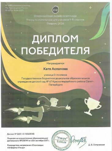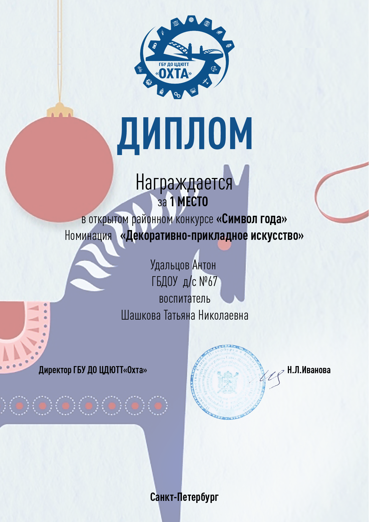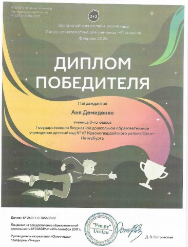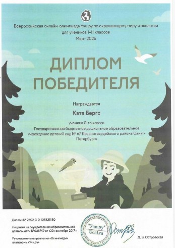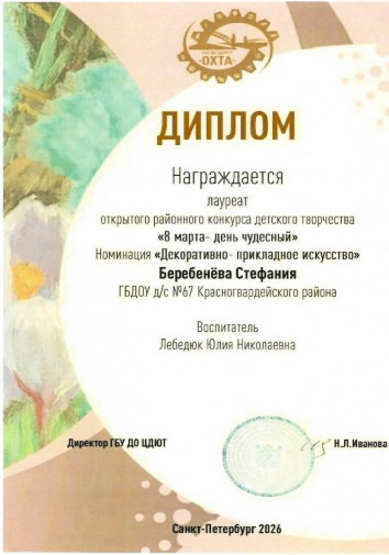 Поздравляем педагогов нашего учреждения - Малярову Людмилу Александровну, Галушка Валерию Максимовну, Рябову Юлию Валерьевну со званием "Димломант" в Конкурсе педагогических достижений Красногвардейского района Санкт-Петербурга, номинация "Детство"!